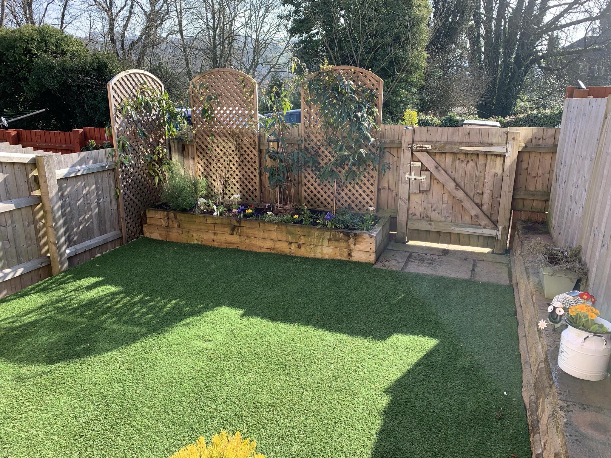 Lounge/Diner - Sofa (seats 3), dining table (seats 4), Smart TV with Freeview, DVD player, Roberts Radio. French doors open onto a south facing garden.